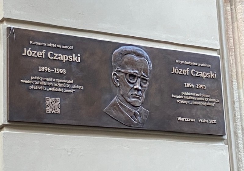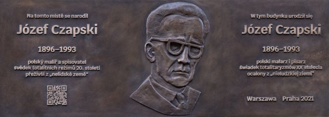 W tym budynku urodził się / Józef Czapski / 1896-1993 / polski malarz i pisarz / świadek totalitaryzmów XX stulecia / ocalony z „nieludzkiej ziemi” / Warszawa Praha 2021