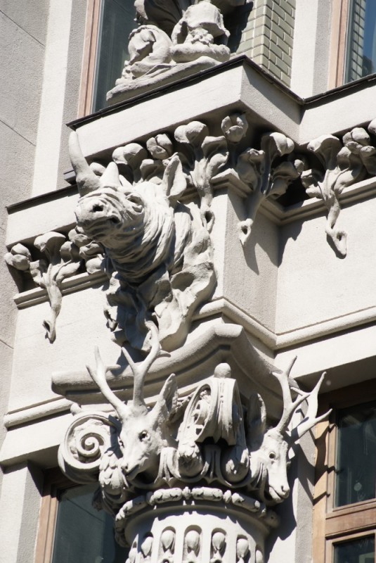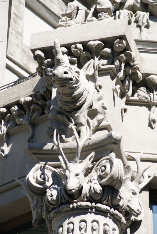 Popularna nazwa budynku Horodeckiego przywodzi na myśl mitologiczne chimery – stworzenia o głowie lwa, ciele kozy i ogonie węża. W tym przypadku jednak jest to mylne skojarzenie, gdyż mowa tu nie o tych baśniowych stworach, lecz o dekoracyjnych elementach architektonicznych. W architekturze bowiem chimerami nazywa się wszelkie rzeźbione zwierzęta, potwory i maszkarony zdobiące budowle. Te zaś znajdziemy zarówno na fasadzie domu przy ul. Bankowej 10, jak i w jego wnętrzu. Budynek ten „zamieszkują” najznakomitsze okazy zarówno istot rzeczywistych, jak i fantastycznych – są tam nie tylko słonie, lwy, nosorożce, orły, żaby i kuropatwy, lecz także syreny i morskie potwory. Dekoracje są emanacją zainteresowań Horodeckiego, który był zapalonym myśliwym, a swoją pasję realizował m.in. na terenach dzisiejszego Azerbejdżanu, Afganistanu, Syberii i Afryki.