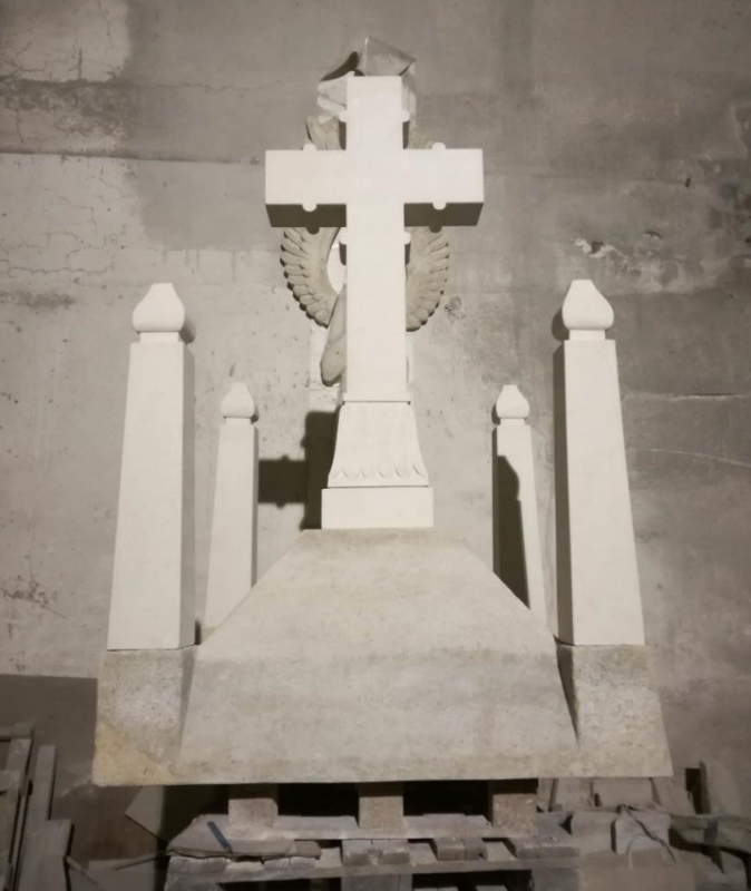 Wykonano montaż elementów na miejscu. Obiekt zabezpieczono na okres zimowy w celu kontynuowania procesu schnięcia kamienia, a następnie wykonano zabieg hydrofobizacji.