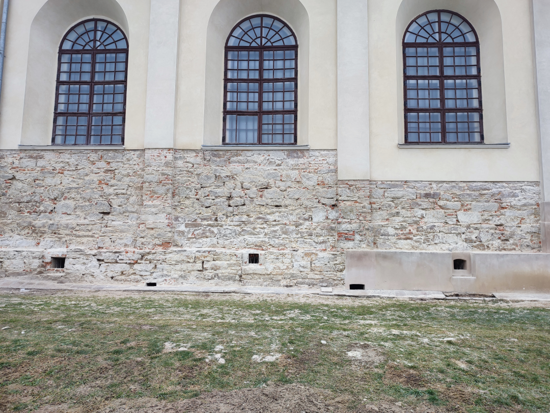 - usunięcie cementowych tynków ze ścian kościoła dolnego wraz z oczyszczeniem i impregnacją biobójczą;